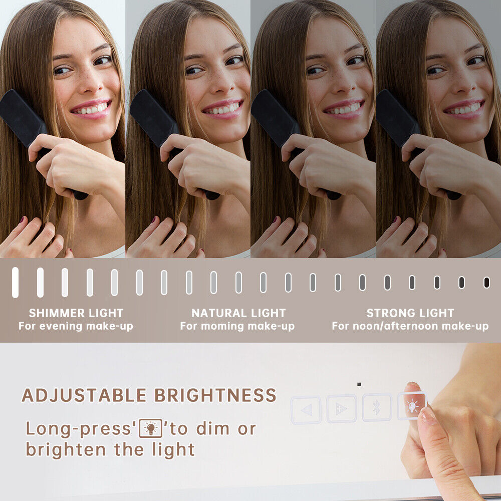 - Integrated Bluetooth Connectivity: Elevate your makeup routine by syncing your smartphone with the mirror's built-in Bluetooth speaker. Enjoy your favorite music or podcasts directly from the mirror while you prepare for the day or a special event. -